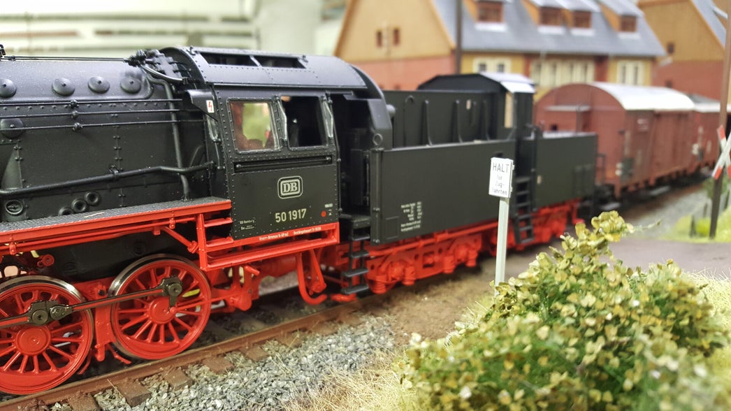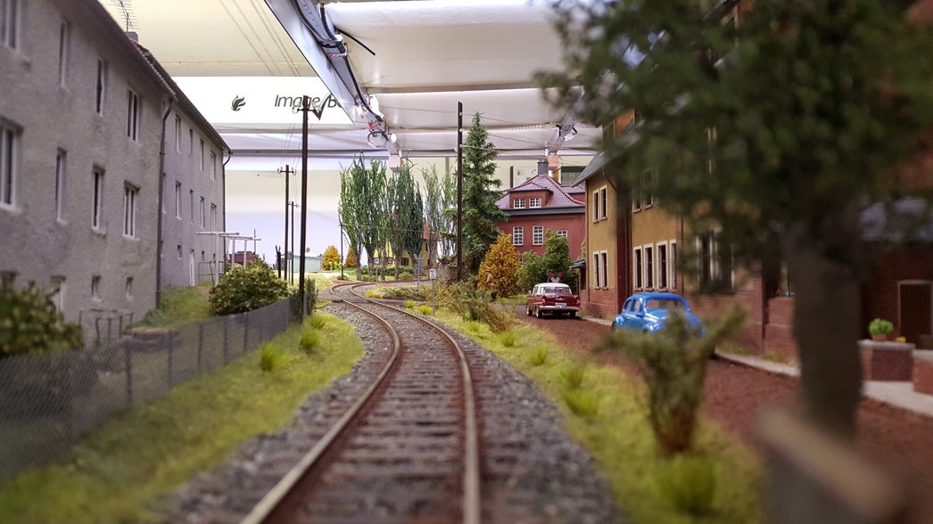 De 16 segmenten waar deze baan op is gebouwd zijn bijna allemaal 113 bij 81 cm, resulterend in de afmeting van 940 cm bij 460 cm. U ziet hier het resultaat van onze inspanningen de afgelopen vijf jaar. De omgeving rond de huizen van de Spinnereistrasse is nagenoeg een kopie van de werkelijkheid in de jaren zestig, elders is de omgeving zoals deze “had kunnen zijn” vormgegeven. Tegenwoordig zijn in het echt nagenoeg alle rails verdwenen maar is nog veel van de omgeving direct rond het voormalig spoor goed herkenbaar. Tijdens diverse bezoeken aan Münsterbusch zijn kenmerkende gebouwen ter plaatse opgemeten, opnieuw digitaal getekend, gelaserd/gegraveerd in mdf en minutieus nagebouwd. Verdere aankleding was echter alleen mogelijk dankzij de bijzondere hulp van Dhr. Roland Keller die, als tiener wonend langs dit traject, treinen, baanvak, station en omgeving uitgebreid heeft gefotografeerd en ons belangeloos heeft geholpen met vele honderden (detail)foto's, die ook deels te zien zijn op het beeldscherm hiernaast. Verdere informatie over dit onderwerp vindt u op zijn website: eisenbahn in Stolberg (www.eisenbahn-stolberg.de)